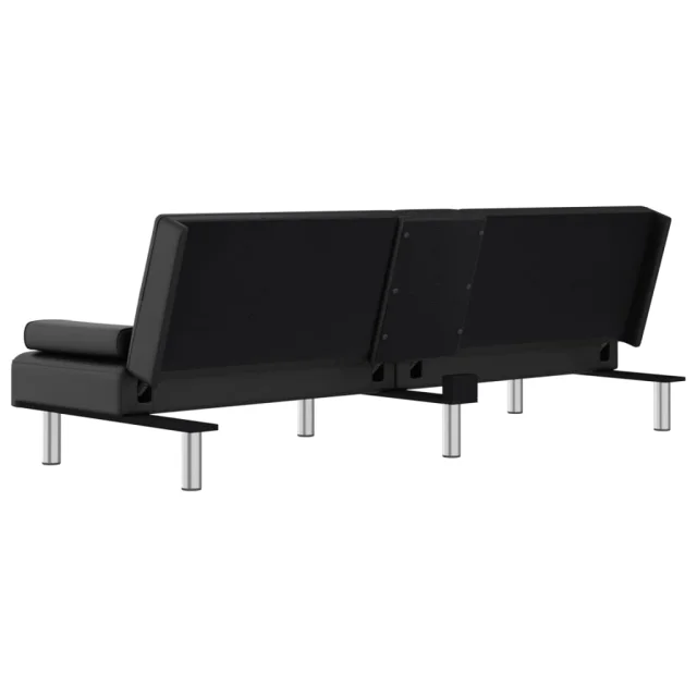 vidaXL Raztegljiv kavč z držali za skodelice črno umetno usnje