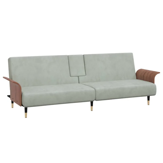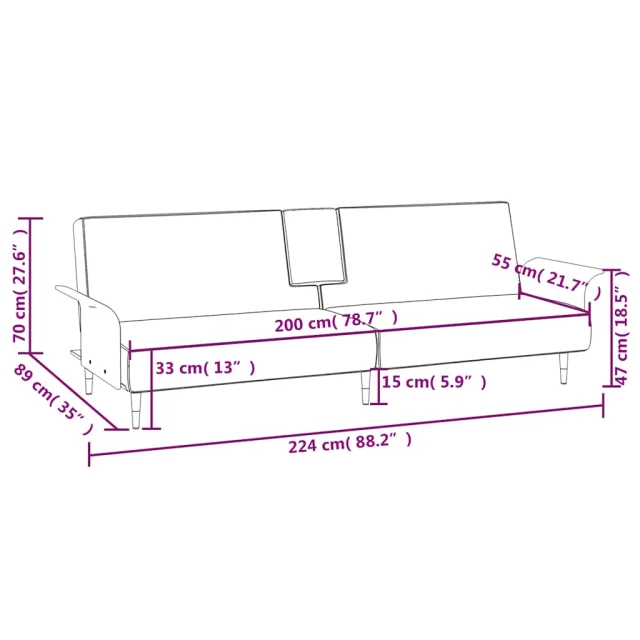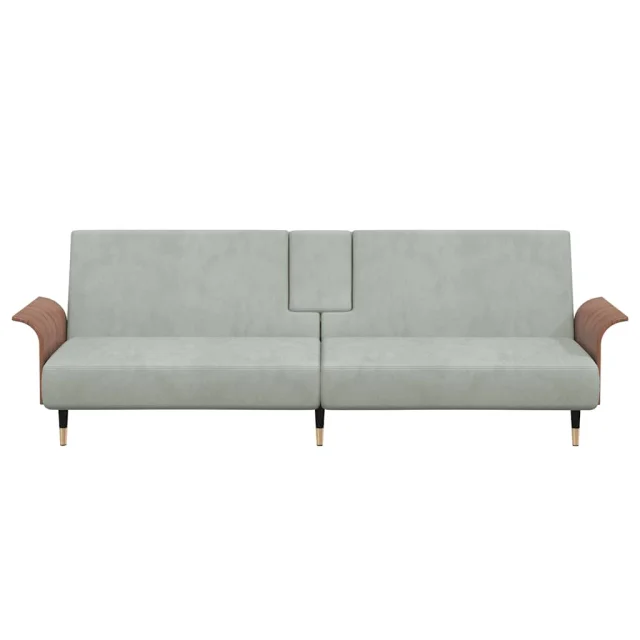 vidaXL Raztegljiv kavč z držali za skodelice svetlo siv žamet