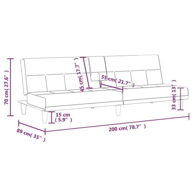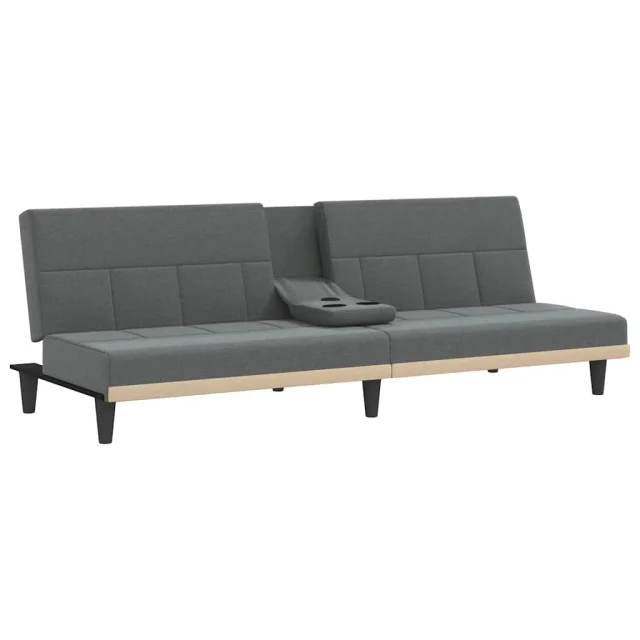 vidaXL Raztegljiv kavč z držali za skodelice temno sivo blago