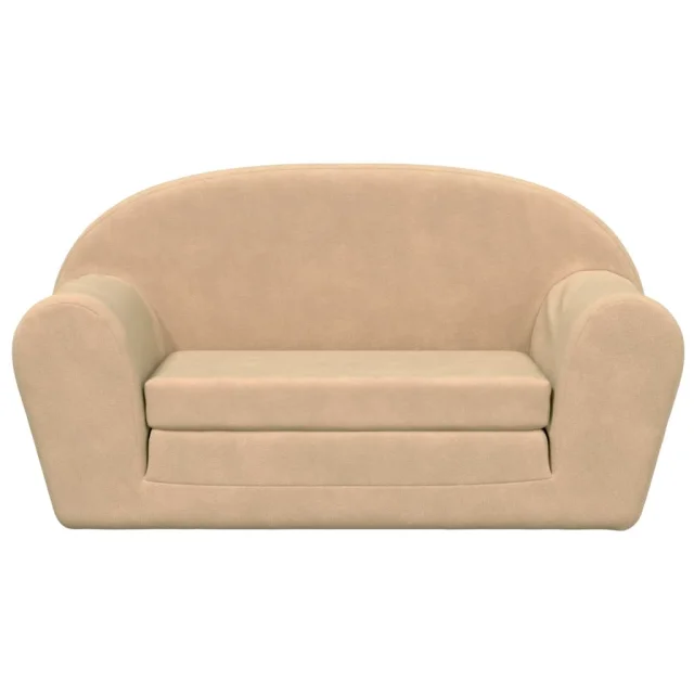 vidaXL Raztegljiv otroški kavč dvosed krem mehak pliš