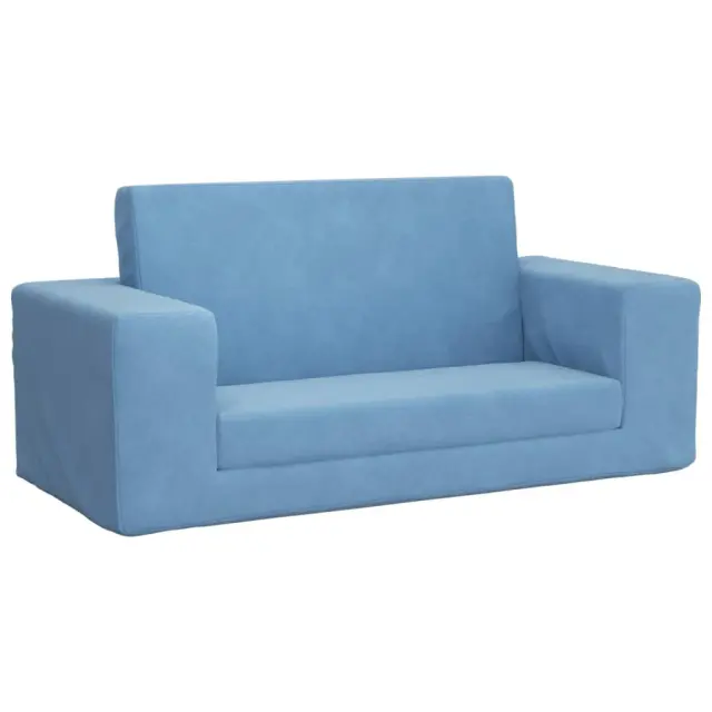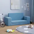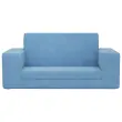 vidaXL Raztegljiv otroški kavč dvosed moder mehak pliš