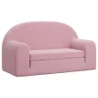 vidaXL Raztegljiv otroški kavč dvosed roza mehak pliš