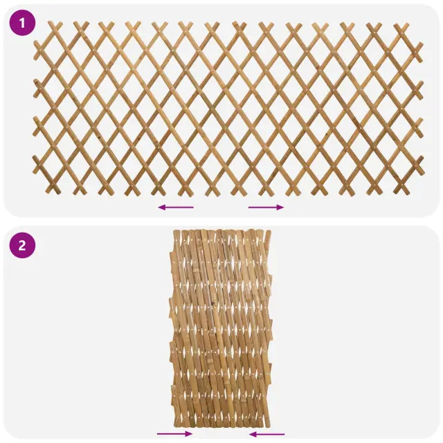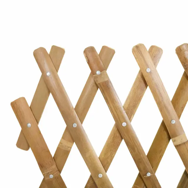 Ta raztegljiv bambusov panel je super za vse vrste vrtnarske uporabe. Narejen iz naravnega bambusa, ga lahko prilagodite različnim prostorom, pa naj gre za podporo rastlinam, okrasitev vrta ali ločevanje zunanjih prostorov. Površina se enostavno čisti in je primerna tudi za vsakodnevno uporabo na prostem.