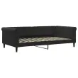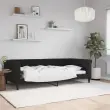Ta dnevna postelja 2 v 1, ki služi kot kavč in postelja, je praktičen in privlačen dodatek za vašo dnevno sobo ali spalnico. Vsestranska dnevna postelja: Raztegljiv kavč se lahko čez dan uporablja kot kavč, ponoči pa kot postelja, kar je hitra rešitev za prenočevanje gostov.Udobna izkušnja: Ležišče je narejeno iz žameta. Je mehka in udobna tkanina, ki je prijetna na koži. Poleg tega sta hrbtišče in naslonjala za roke postelje za goste oblazinjena s peno, kar izboljša udobje pri sedenju.Trpežen in stabilen okvir: Glavni okvir kavča za spanje je izdelan iz kovine in trdnega lesa, zato je zelo trpežen in vzdržljiv. Letvice iz vezanega lesa omogočajo boljše kroženje zraka, zaradi česar je ležišče dlje časa sveže, hkrati pa izboljšujejo nosilnost in zagotavljajo stabilnost.Sodobno oblikovanje: Kavč postelja ima sodoben dizajn, ki ga odlikujejo čiste linije, minimalističen videz in naravna svetloba, vašim notranjim prostorom pa bo dodal sodoben stil! Dobro je vedeti:Vzmetnica ni priložena tej postelji. Ponujamo različno izbiro ležišč. V naši trgovini si lahko ogledate ustrezne vzmetnice.Barva: Črna Material: Žamet (100 % poliester), kovina, vezan les, trden les Material polnila: Pena Celotne dimenzije: 229 x 110 x 68 cm (Š x G x V) Širina sedeža: 200 cm Globina sedeža: 100 cm Višina sedeža, merjena od tal: 26,5 cm Višina naslonjal za roke, od tal: 68 cm Višina nog: 15 cm Velikost primerne vzmetnice: 100 x 200 cm (Š x D) (vzmetnice niso priložene)Potrebno sestavljanje: Da 354255