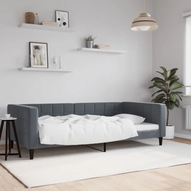 vidaXL Raztegljiva postelja temno siva 100x200 cm žamet