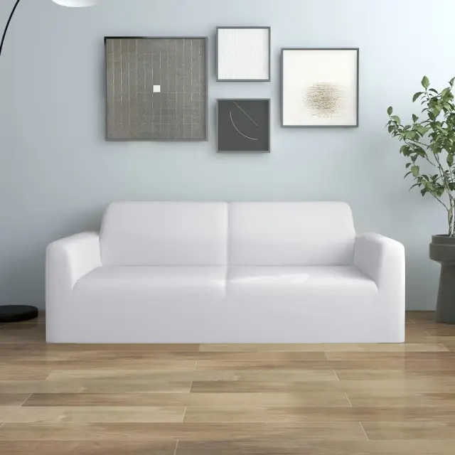 vidaXL Raztegljiva prevleka za kavč bela siva poliester jersey