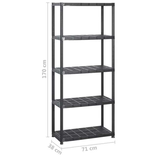vidaXL Regal s policami 5-nadstropni črn 142x38x170 cm plastika