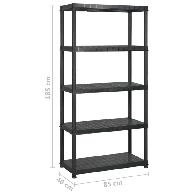 vidaXL Regal s policami 5-nadstropni črn 170x40x185 cm plastika