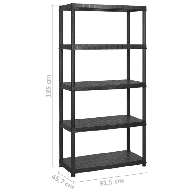vidaXL Regal s policami 5-nadstropni črn 183x45,7x185 cm plastika