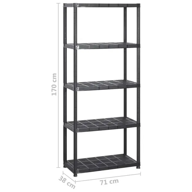 vidaXL Regal s policami 5-nadstropni črn 213x38x170 cm plastika