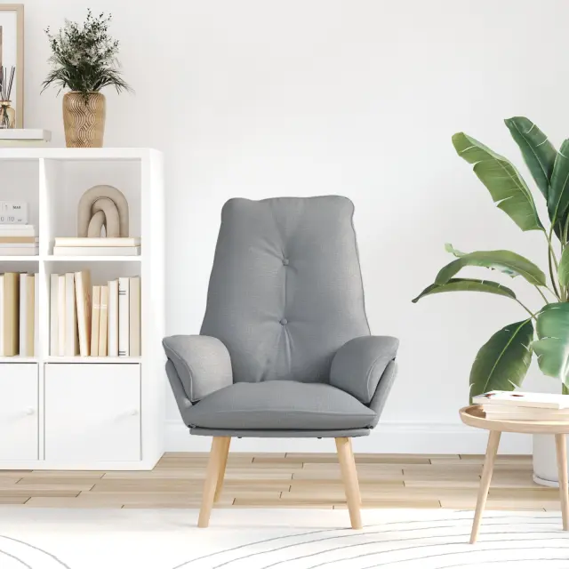 Ta trendi naslanjač doda udobno vzdušje tvojim prostorom, zaradi česar je super mesto za sprostitev. Z modernim izgledom in svetlo sivo tkanino se lepo prilega različnim stilom, vabi te, da bereš, se sproščaš ali preprosto odložiš po dolgem dnevu.