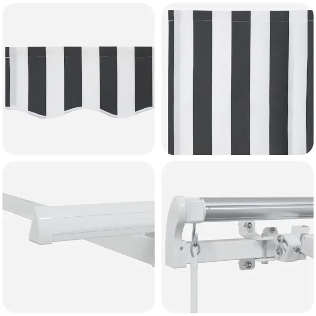 Ta moderna zložljiva terasa je zasnovana za zunanje prostore in ponuja kombinacijo stila in funkcionalnosti. Njena gladka in modernega izgleda oblika s črtasto strukturo daje živahen vtis in nudi odlično senco pred močnim poletnim soncem.