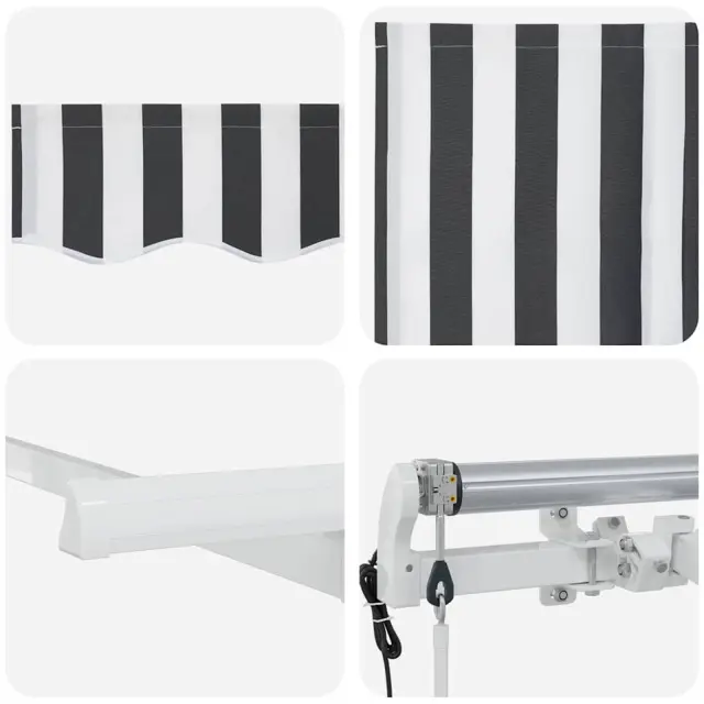 Ta moderna zložljiva terasa je zasnovana za zunanje prostore in ponuja kombinacijo stila in funkcionalnosti. Njena gladka in modernega izgleda oblika s črtasto strukturo daje živahen vtis in nudi odlično senco pred močnim poletnim soncem.