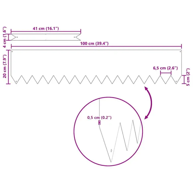 Ta obroba za vrt in trato nudi čisto in stilno rešitev za razmejitev prostorov na vašem zunanjem območju s svojo moderno zasnovo. Odlična je za vrtove in terase ter zagotavlja jasno ločitev med travo, cvetličnimi gredami in potmi, kar pripomore k urejenemu in estetskemu videzu pokrajine. Njena zasnova se brez težav ujema z različnimi slogi zunanje dekoracije in izboljša celoten videz vašega vrta, kar poenostavi vzdrževanje.