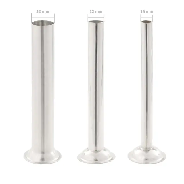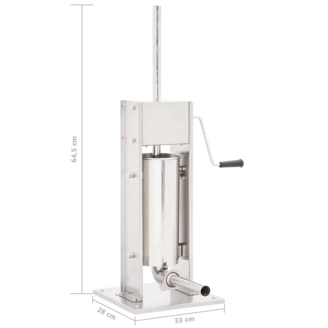 Polnilka za klobase iz nerjavečega jekla je opremljena s 5-litrskim lijakom, ki je nagiben in odstranljiv za priročno polnjenje vašega mesa za klobase ter zagotavlja enostavno čiščenje. Z ročico aktivirate bat, ki potiska maso za meso skozi cev za polnjenje. Priložene so tudi 3 cevi za polnjenje različnih velikostih za vaše različne potrebe.