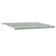 Ta retractibilna tenda je pameten in stiliziran način, kako ohraniti udobne zunanje prostore in ustvariti zaščito za terase ter balkone pred neprijetnim poletnim soncem. Njena svetla zelena in bela črtasta tkanina ne le da izgleda super, ampak tudi ustvarja prijetno zasenčeno mesto za sprostitev in zabavo.