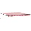 Ta ročna retraktibilna tenda pritegne pozornost s svojimi svetlo rdečimi in belimi črtami, kar je odlično za popestritev vašega zunanjega prostora. Pri velikosti 450x300 cm nudi obilo sence za balkone, terase in zunanje druženja, njena teksturirana površina pa prinaša sodoben pridih.