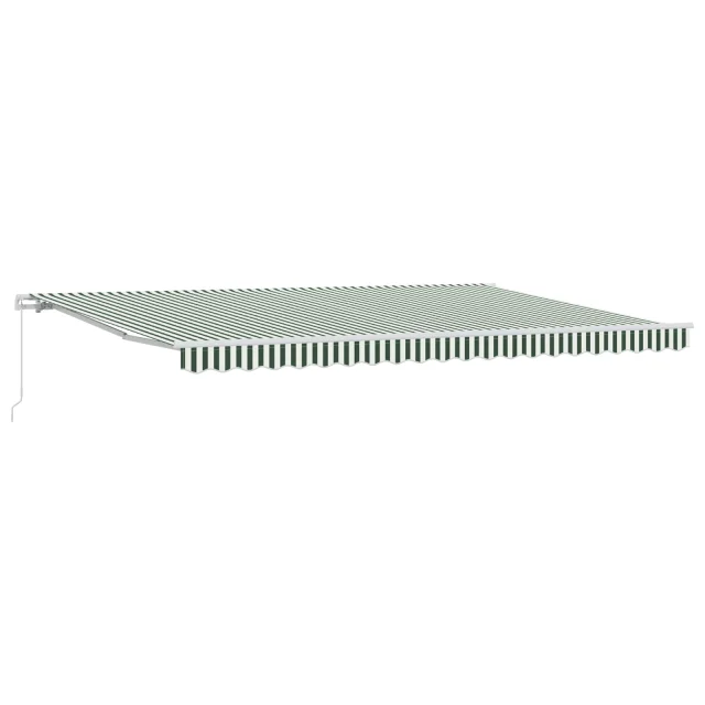 Ta ročna retraktibilna tenda je šik rešitev za terase, balkone in vrtove. S privlačnim vzorcem zelenih in belih črt izboljšuje izgled tvojega doma ter ti nudi senco, da ostaneš hladen v vročih poletnih dneh.