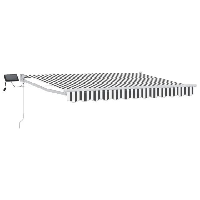 Ta ročna senčnica z solarno LED osvetlitvijo nudi senco in svetlobo za terase, verandice in druge zunanje prostore. Njen zložljiv dizajn vam omogoča, da jo podaljšate ali zložite, da prilagodite senco glede na sonce.