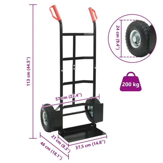 vidaXL Ročni voziček Črna in rdeča 57 x 46 x 113 cm Jeklo