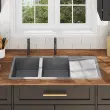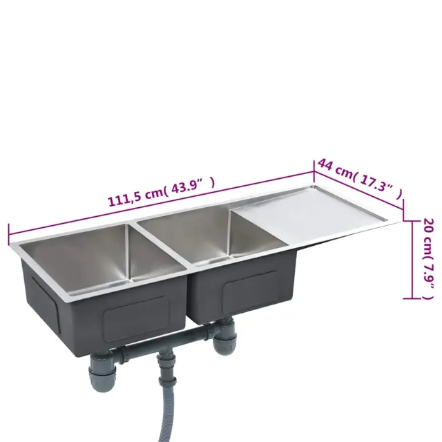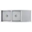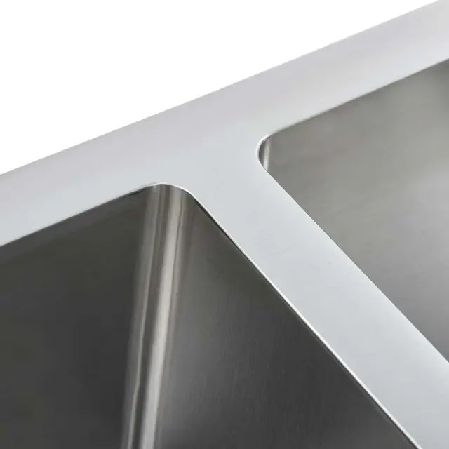 To dvojno pomivalno korito združuje najboljše funkcije in dizajn, izdelano pa je iz visokokakovostnega ročno izdelanega nerjavečega jekla z barvo proti kondenzaciji, plesni in koroziji ter brez svinca. Je zvočno izolirano z blazinicami za zmanjšanje zvoka. Odcejalnik vam bo prišel prav pri ročnem pomivanju posode, pa tudi kot dodaten prostor za rezanje zelenjave. Poleg tega koriti z edinstvenim dizajnom X-flume omogočata hiter pretok in preprečujeta stanje vode na dnu korita.