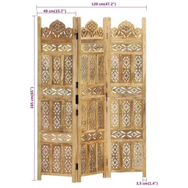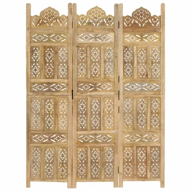 vidaXL Ročno izrezljan paravan 3-delni 120x165 cm trden mangov les