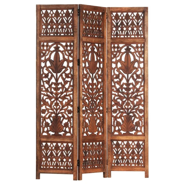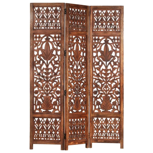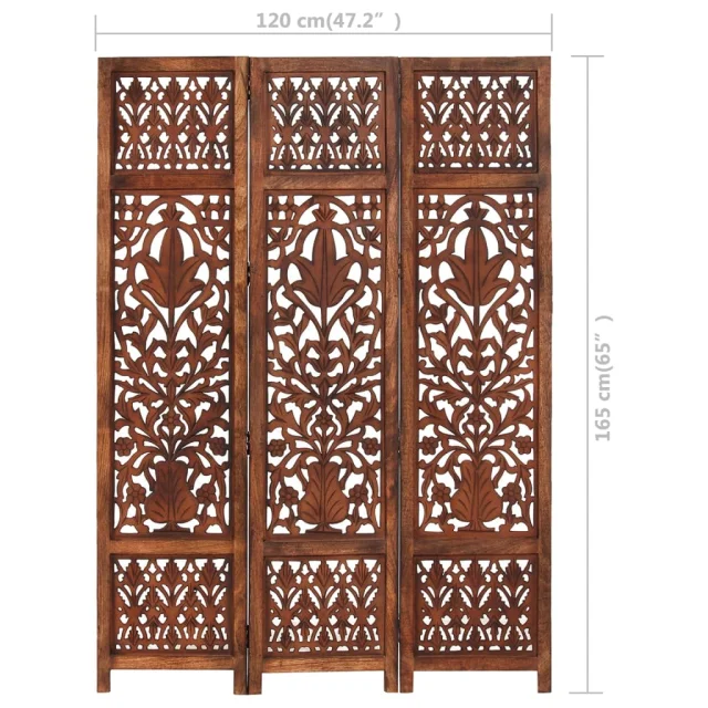 vidaXL Ročno izrezljan paravan 3-delni rjav 120x165 cm mangov les