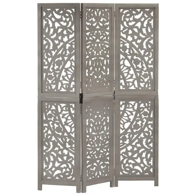 vidaXL Ročno izrezljan paravan 3-delni siv 120x165 cm trden mangov les