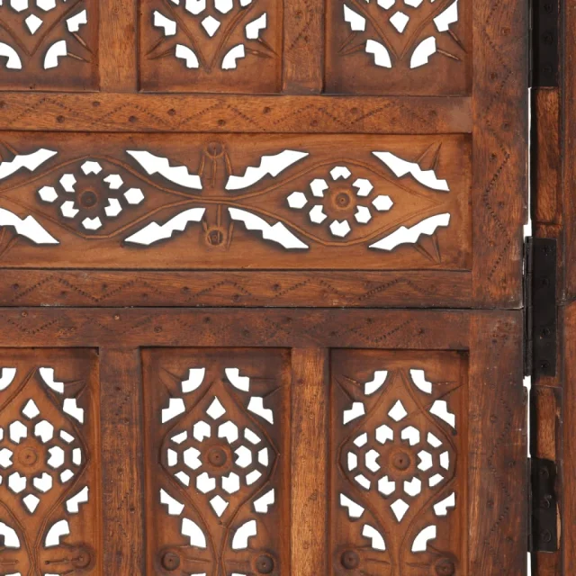 vidaXL Ročno izrezljan paravan 4-delni rjav 160x165cm trden mangov les