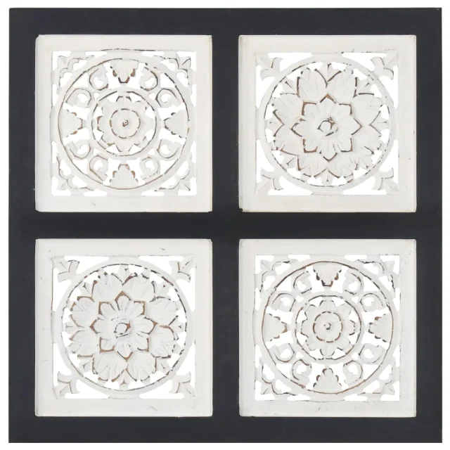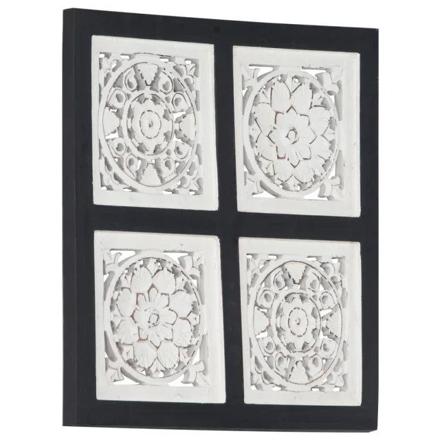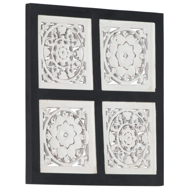 vidaXL Ročno izrezljani stenski panel MDF 40x40x1,5 cm črn in bel