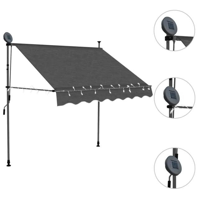 vidaXL Ročno zložljiva tenda z LED lučkami 150 cm antracitna