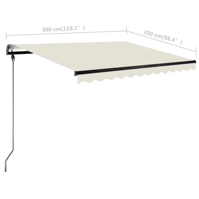vidaXL Ročno zložljiva tenda z LED lučkami 300x250 cm krem