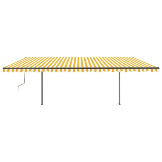 Ustvarite prijeten in hladen prostor na vaši terasi ter se s to ročno zložljivo tendo zaščitite pred UV žarki! Ta zunanja tenda z nerjavečim aluminijastim okvirjem s prašnim premazom je lahka in močna. Močan železen stebriček nudi stabilnost. Blago za tendo za teraso je narejeno iz poliestra visoke gostote s PU premazom, zato je odporno na vodo in UV. Naklon in višina sta nastavljiva glede na vaše potrebe. Tendo lahko preprosto odprete in zaprte s pomočjo dolge ročice.Barva blaga: Rumena in belaBarva okvirja: AntracitnaMaterial: Prašno premazan aluminij, železo, blago (100 % poliester) s PU oblogoCelotna velikost: 350 x 250 cm (D x Š)Velikost stebra: 300 x 245 cm (Š x V)Potrebno sestavljanje: Da 3070118