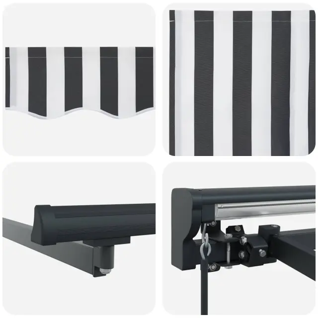 Ta retraktabilna tenda ponuja enostavno senco za zunanje prostore, kot so vrtovi in terase. Hitro jo razširite ali skrajšate, da prilagodite količino svetlobe in zaščite, ki jo potrebujete. Idealna je za zunanjo obedovanje, sproščanje ali zabave ter prispeva k udobnemu okolju s senco pred soncem in lahkim dežjem. Tenda je odličen dodatek za izkoriščanje zunanjih površin skozi vse leto.