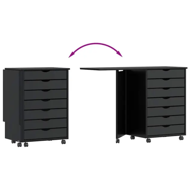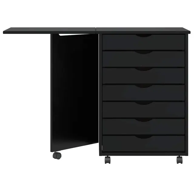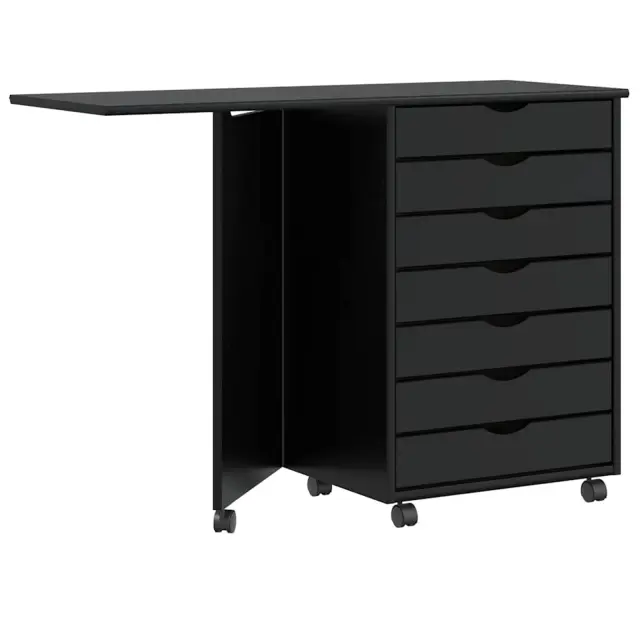 vidaXL Rolling Cabinet z mizo "MOSS" Black Solid Wood Pine