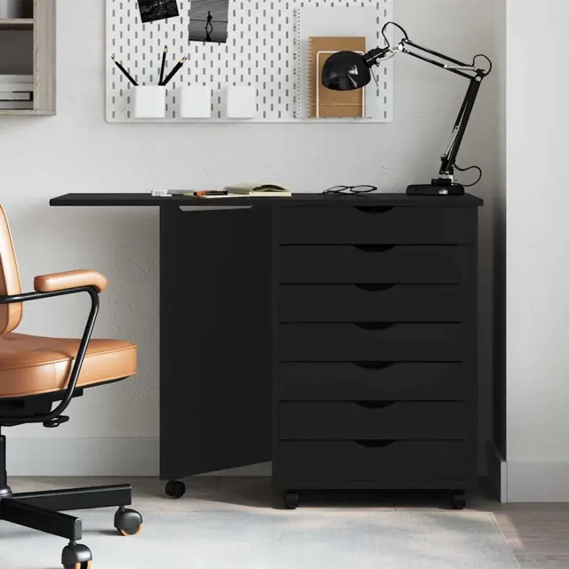 Ta premična omarica z mizo vam omogoča boljše delo, saj so stvari urejene in lahko dosegljive.