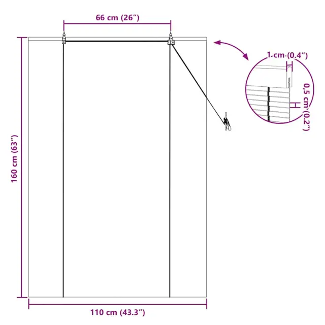 • Sistem z vrvico: Zlahka dvignite ali spustite žaluzijo s sistemom vrvice. Mehanizem zagotavlja gladko delovanje ter natančno kontrolo, kar olajša prilagajanje žaluzije po vaših željah. Vključena naprava za prekinitev omogoča dodatno varnost, ker zmanjša tveganje zapletanja.