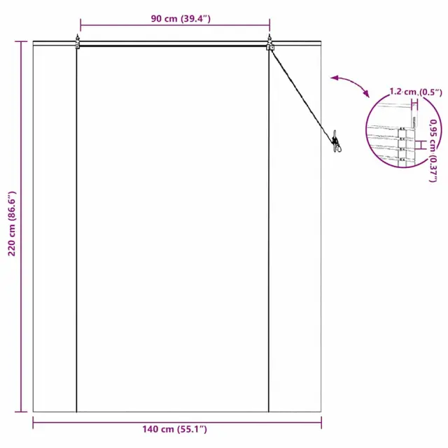 • Splošne dimenzije: 140 x 1,2 x 220 cm (D x Š x V)