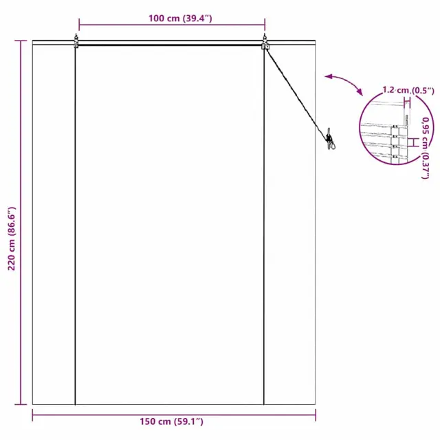 • Splošne dimenzije: 150 x 1,2 x 220 cm (D x Š x V)
