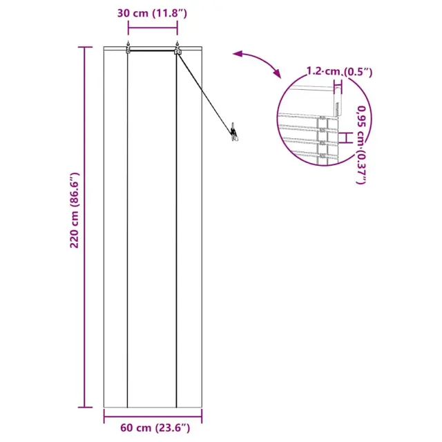• Splošne dimenzije: 60 x 1,2 x 220 cm (D x Š x V)