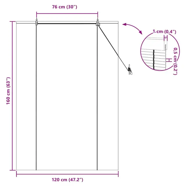 • Sistem z vrvico: Zlahka dvignite ali spustite žaluzijo s sistemom vrvice. Mehanizem zagotavlja gladko delovanje ter natančno kontrolo, kar olajša prilagajanje žaluzije po vaših željah. Vključena naprava za prekinitev omogoča dodatno varnost, ker zmanjša tveganje zapletanja.