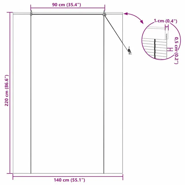 • Sistem z vrvico: Zlahka dvignite ali spustite žaluzijo s sistemom vrvice. Mehanizem zagotavlja gladko delovanje ter natančno kontrolo, kar olajša prilagajanje žaluzije po vaših željah. Vključena naprava za prekinitev omogoča dodatno varnost, ker zmanjša tveganje zapletanja.