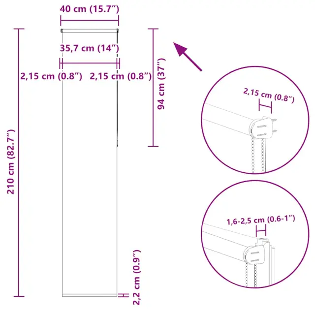 vidaXL Rolo zatemnjena svetlo siva 40x210 cm tkanina širina 35,7 cm