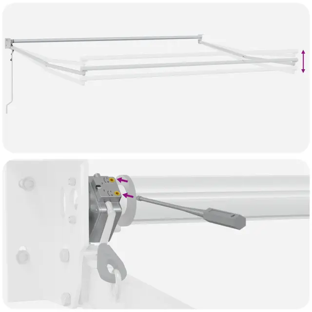 Ta retraktibilna tenda je super način, da ustvariš senco na tvojem balkonu ali terasi, pa je še lepa in funkcionalna. Z modernim dizajnom in svetlim črtastim vzorcem prinaša idealno kombinacijo stila in praktičnosti, kar je super za vsakogar, ki si želi uživati na prostem.