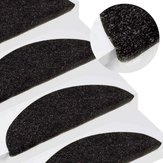 vidaXL Samolepilne preproge za stopnice 15 kosov 56x17x3 cm antracitne