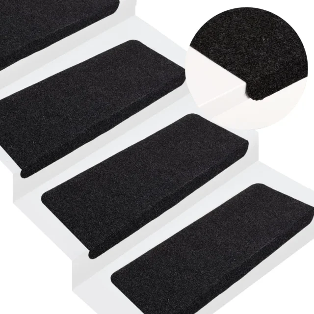 vidaXL Samolepilne preproge za stopnice 15 kosov 65x24,5x3,5 cm črne