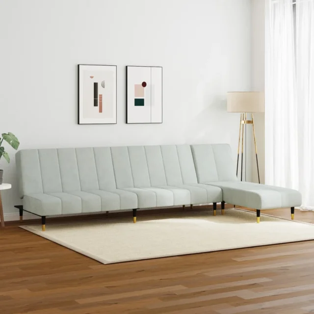 vidaXL Sedežna garnitura 2-delna svetlo siv žamet
