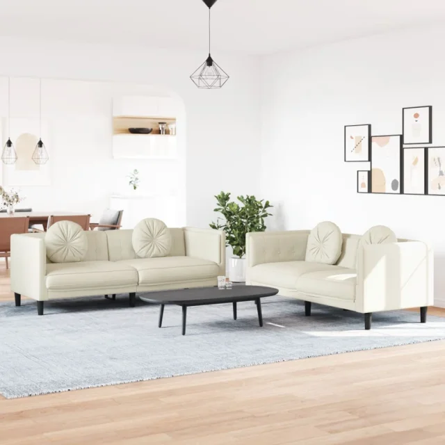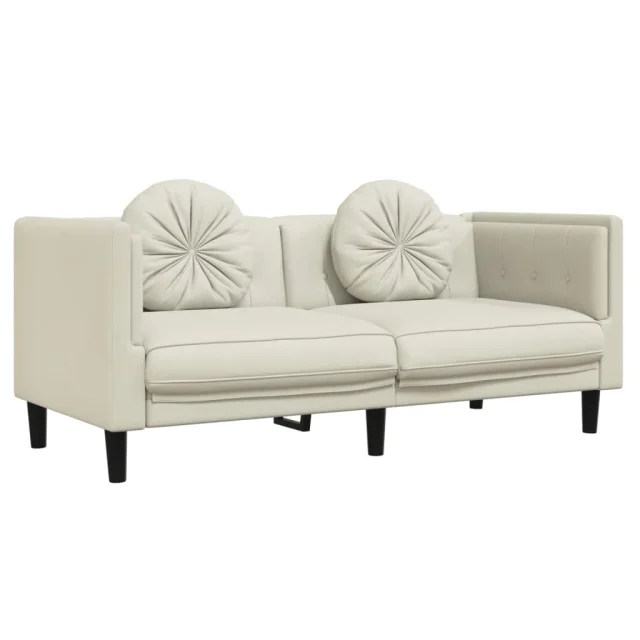 vidaXL Sedežna garnitura 2-delna z vzglavniki krem žamet