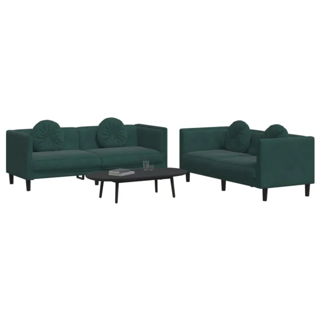 vidaXL Sedežna garnitura 2-delna z vzglavniki temno zelen žamet