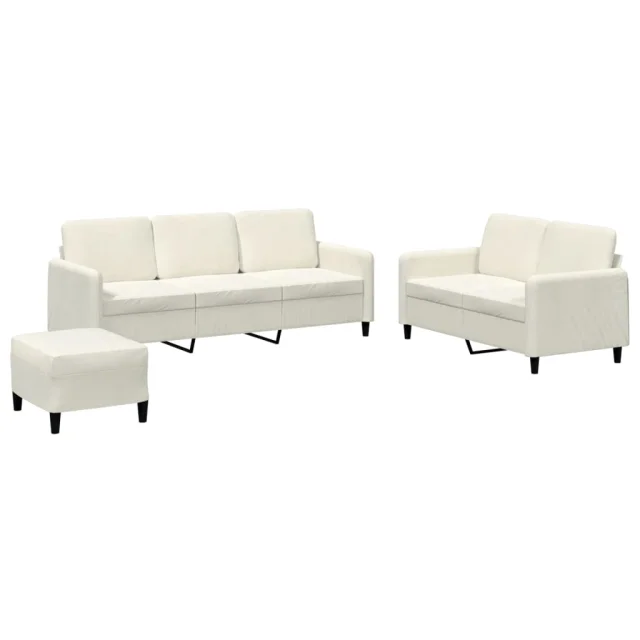 vidaXL Sedežna garnitura 3-delna krem žamet